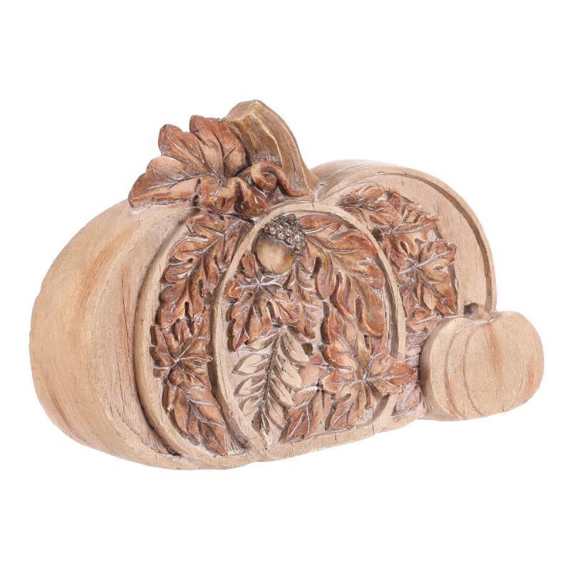 Dýně s osvětlením v imitaci dřeva a s podzimním listím se žaludem přináší do vaší zahrady kouzelnou podzimní atmosféru. Vyrobená je z magnesia, ale svým zpracováním skvěle zapadne mezi dřeviny a keře. Dekorace je vybavena osvětlením, díky kterému můžete rozsvítit vybrané místo, čímž vytvoříte zejména za temných večerů, skutečně tajemnou atmosféru. Tato dekorace je skvělou volbou pro zahradu, terasu, balkon, případně i stylovým prvkem vybraného místa v interiéru. Objem celkem (m3): 0.01 Hmotnost - netto (kg): 1.85 Hloubka (cm): 11.00 Hmotnost - brutto (kg): 2.00 Počet kusů v boxu: 2.00 Barva primární: Hnědá Počet baterií: 3.00 Výška (cm): 22.00 Materiál: Magnesium Sezóna: Podzim Alternativní sezóna: Zahrada Počet kusů v kartonu: 6.00 Mix druhů: Ne Baterie součástí balení: Ne Šířka (cm): 36.00 Typ baterie: AAA Rozměry: cm Hmotnost:1,75 kg Cena je za 2 kusů.