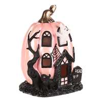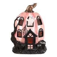 Dýňový domek z polyresinu je kouzelnou halloweenskou dekorací, která rozzáří váš prostor tajemnou atmosférou. Růžová dýně s LED osvětlením uvnitř působí nevšedně a zároveň strašidelně, zatímco duch vykukující z okna dodává dekoraci správnou dávku tajemna. Černé okenní rámy, dveře i náhrobky před vchodem pak celý dojem ještě umocňují. Objem celkem (m3): 0.00 Počet kusů v boxu: 1.00 Hloubka (cm): 12.00 Šířka (cm): 14.00 Výška (cm): 19.00 Počet baterií: 2.00 Barva primární: Růžová Materiál: Polyresin Alternativní sezóna: Dušičky Sezóna: Halloween Hmotnost (g): 540.00 Počet kusů v kartonu: 8.00 Mix druhů: Ne Baterie součástí balení: Ano Typ baterie: LR44 Rozměry: cm Hmotnost:0,75 kg Cena je za 2 kusů.