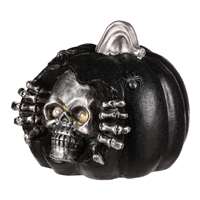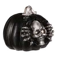 Černá dýně s lebkou je halloweenská dekorace, která nahání husí kůži. Vypadá totiž, jako by se ze shnilé dýně dral ven kostlivec s hrozivým výrazem. LED osvětlení, které má zabodované uvnitř, jenž mu dovede rozsvítit oči, podtrhuje jeho děsivý efekt. Pokud si chcete zahalit domov, nebo své okolí do tajuplné až lehce strašidelné atmosféry, bude právě tato ozdoba, tou pravou. Počet kusů v kartonu: 1.00 Objem celkem (m3): 0.03 Materiál: Magnesium Alternativní sezóna: Dušičky Výška (cm): 29.00 Hmotnost (g): 3180.00 Počet baterií: 3.00 Sezóna: Halloween Hloubka (cm): 33.00 Šířka (cm): 33.00 Baterie součástí balení: Ne Mix druhů: Ne Barva primární: Černá Typ baterie: AA Rozměry: cm Hmotnost:4 kg