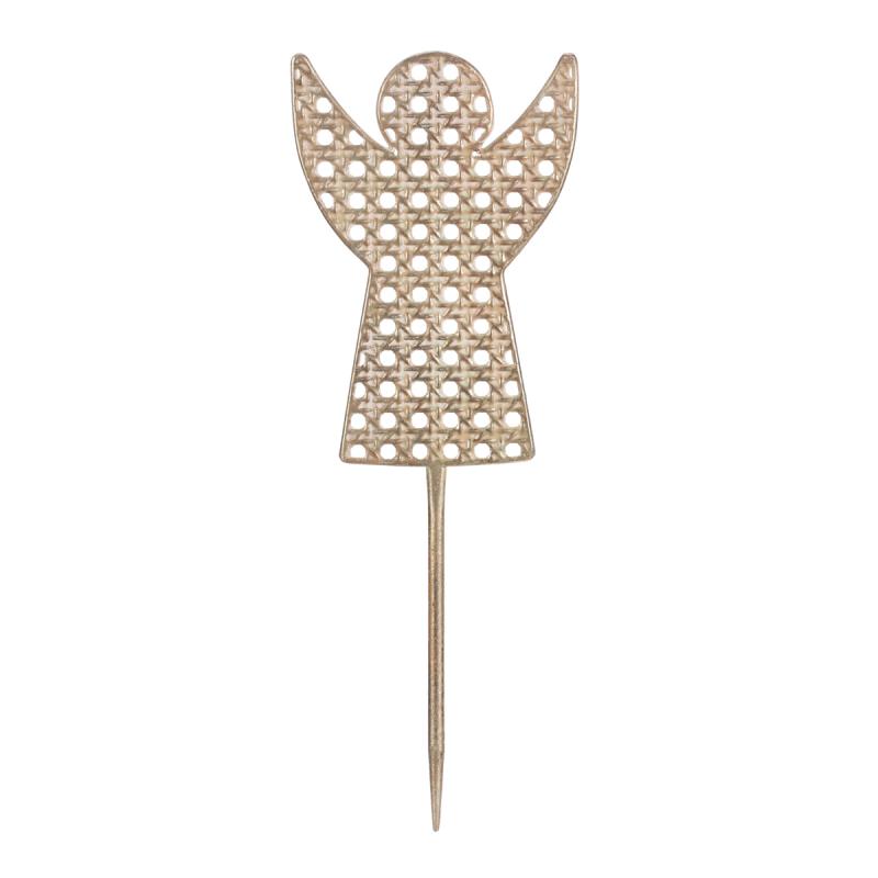 Kovová dekorace ve tvaru anděla a ve formě zápichu je krásným doplňkem zejména vánoční výzdoby. Díky jemným kruhovým otvorům a champagne odstínu, působí lehce a elegantně. Skvěle se hodí do květináčů, mezi rostliny nebo jako součást nejrůznějšího svátečního aranžmá. Hmotnost - brutto (kg): 0.00 Objem celkem (m3): 0.00 Hmotnost - netto (kg): 0.09 Hloubka (cm): 1.00 Šířka (cm): 14.00 Barva primární: Zlatá Sezóna: Vánoce Výška (cm): 40.00 Počet kusů v kartonu: 48.00 Počet kusů v boxu: 6.00 Materiál: Kov Mix druhů: Ne Hmotnost (g): 85.00 Rozměry: cm Hmotnost:0,18 kg Cena je za 6 kusů.