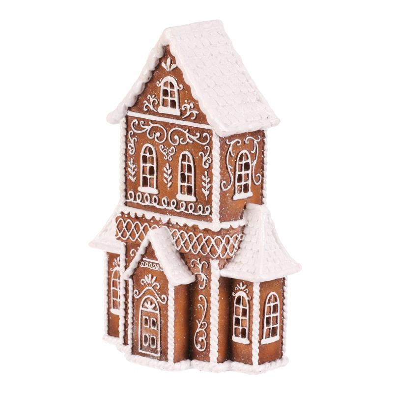 Polyresinová stolní dekorace v podobě patrového domku v perníkovém designu bude nádhernou dekorací pro kouzelné vánoční období. Vypadá jako by byl skutečně vytvořen z perníku o ozdoben sladkou bílou polevou. To ale ještě není vše! Díky zabudovanému LED osvětlení uvnitř, si můžete vychutnávat pohled na nádherně rozptýlené paprsky, které vycházejí skrze všechna okénka ven. Hmotnost - netto (kg): 0.62 Počet kusů v boxu: 1.00 Objem celkem (m3): 0.01 Hmotnost - brutto (kg): 1.00 Počet kusů v kartonu: 12.00 Šířka (cm): 16.00 Výška (cm): 23.00 Sezóna: Vánoce Barva primární: Hnědá Počet baterií: 3.00 Materiál: Polyresin Hmotnost (g): 615.00 Hloubka (cm): 8.00 Mix druhů: Ne Baterie součástí balení: Ano Typ baterie: LR41 Rozměry: cm Hmotnost:0,61 kg Cena je za 2 kusů.