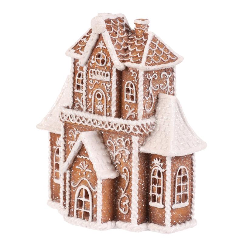 Polyresinová stolní dekorace, v podobě zdobeného patrového domku v perníkovém designu, bude nádhernou dekorací pro kouzelné vánoční období. Vypadá jako by byl skutečně vytvořen z perníku a ozdoben sladkou bílou polevou. To ale ještě není vše! Díky zabudovanému LED osvětlení uvnitř, si můžete po jeho rozsvícení vychutnávat pohled na nádherně rozptýlené paprsky, které vycházejí skrze všechna okénka ven. Hmotnost - netto (kg): 0.63 Počet kusů v boxu: 1.00 Objem celkem (m3): 0.01 Hmotnost - brutto (kg): 1.00 Počet kusů v kartonu: 12.00 Šířka (cm): 18.00 Barva sekundární: Bílá Výška (cm): 20.00 Sezóna: Vánoce Barva primární: Hnědá Počet baterií: 3.00 Materiál: Polyresin Hmotnost (g): 625.00 Mix druhů: Ne Baterie součástí balení: Ano Hloubka (cm): 9.00 Typ baterie: LR41 Rozměry: cm Hmotnost:0,67 kg Cena je za 2 kusů.